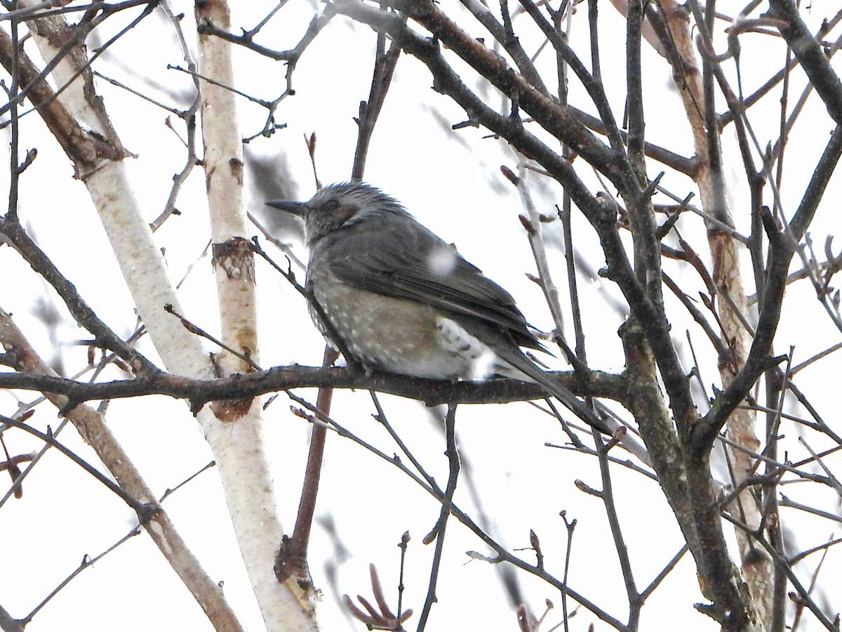 撮影のはじめの頃は、、雪雲が通過するたびに、チラチラと雪片が舞う状態が続いていました。