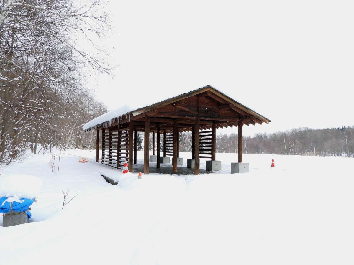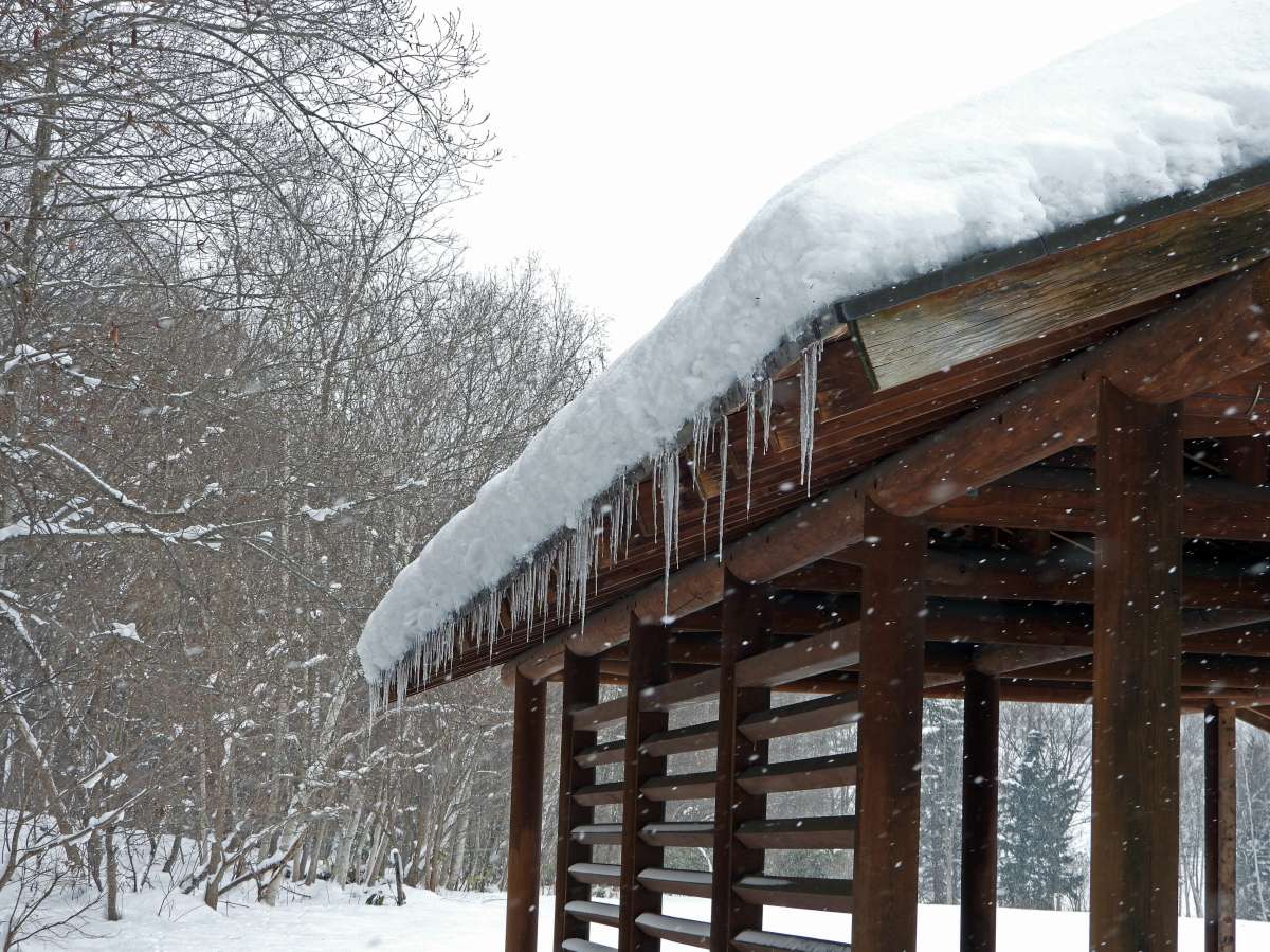 管理棟から東屋まではスノーシューの踏み跡がありました。