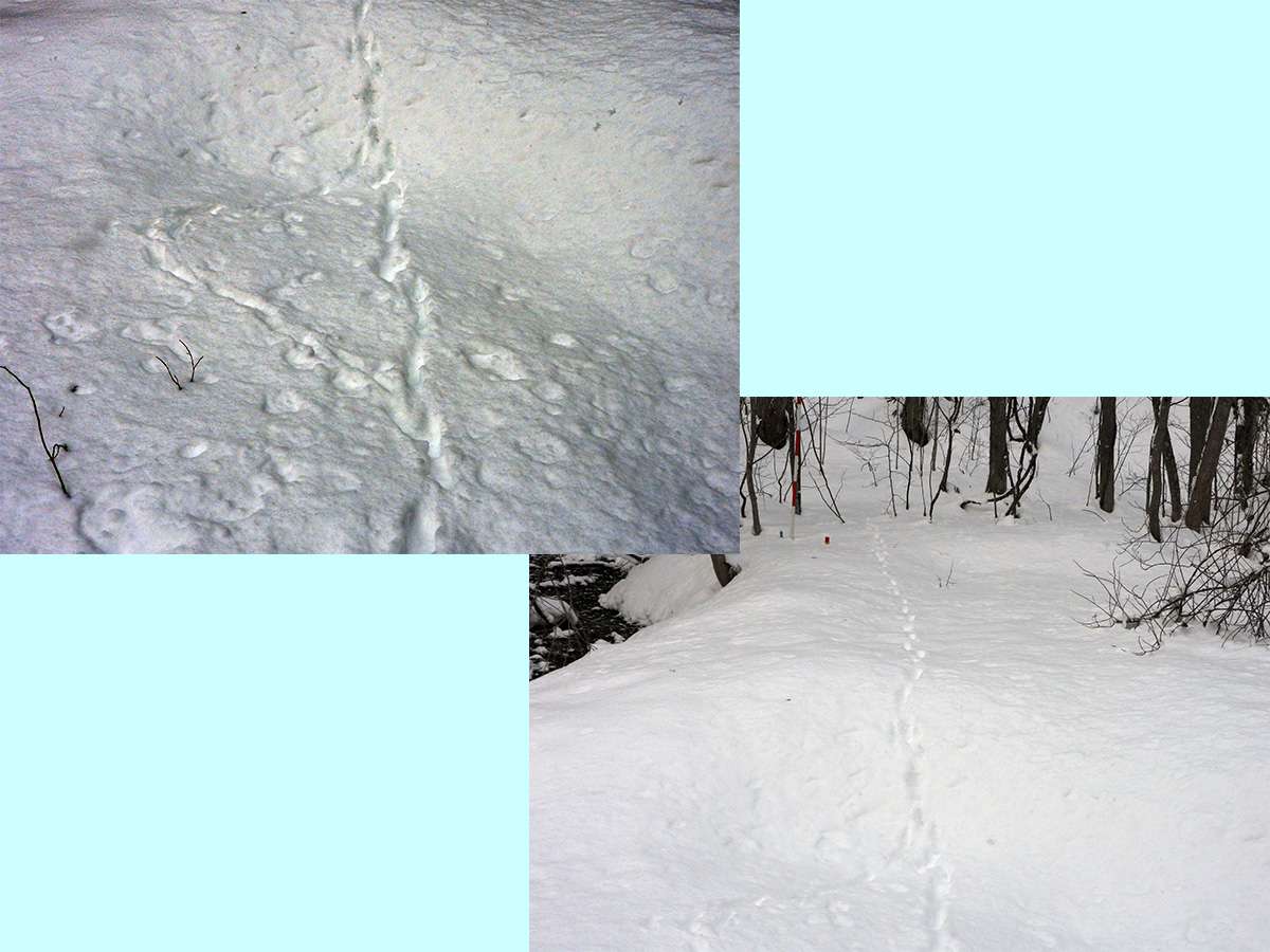 まだ雪が締まっていないためか、野生動物の足跡もわずかでした。