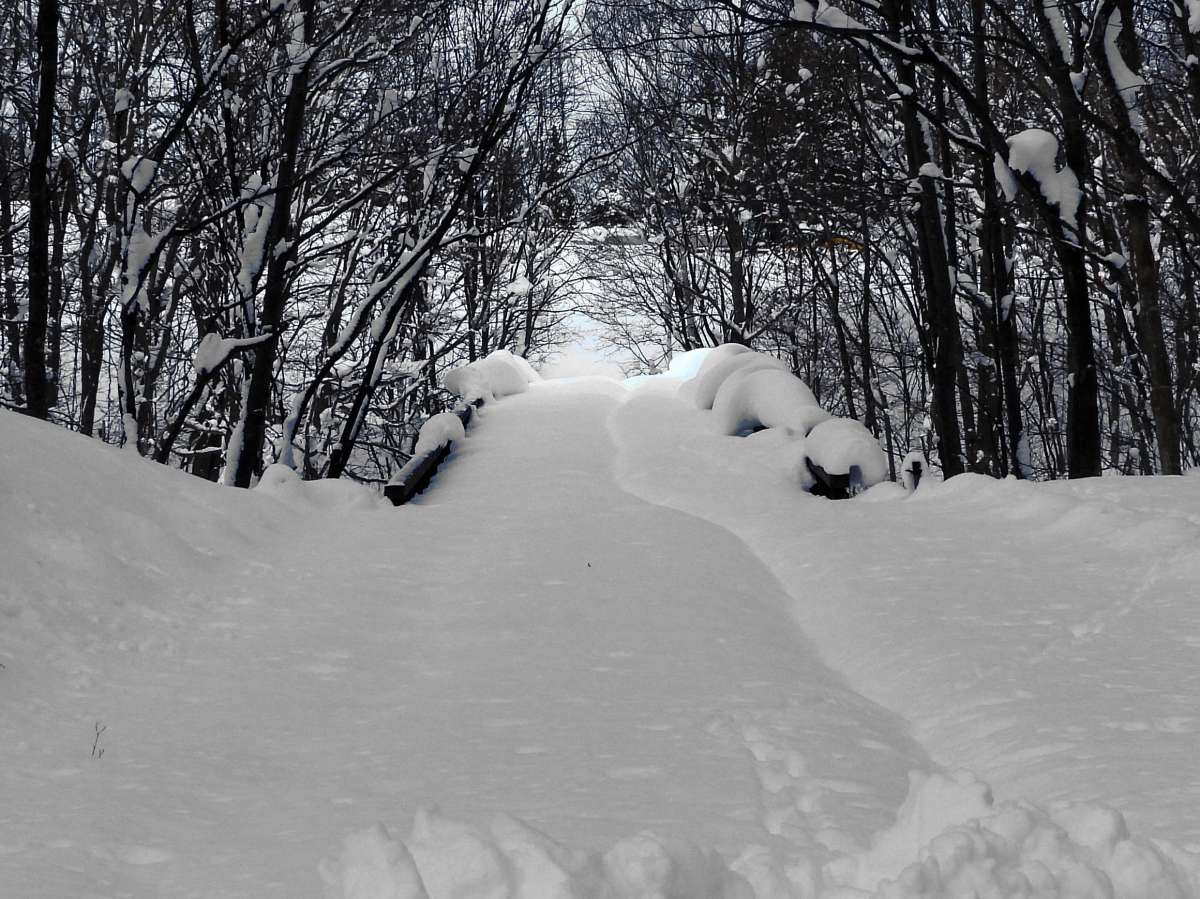 公園内は、入口から管理棟までの園路は機械除雪されていましたが、管理棟から先の園路の除雪はされていませんでした。
