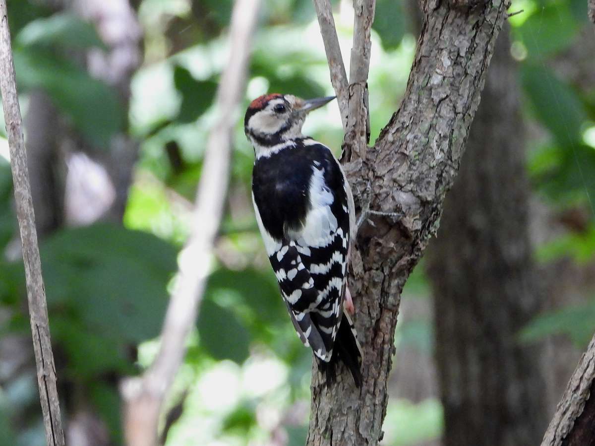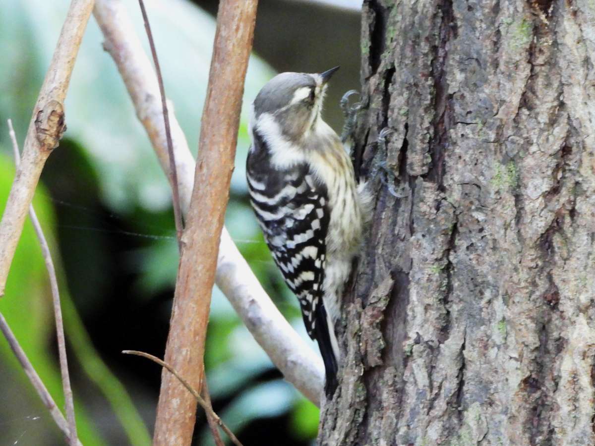 ゆっくり近づいて確認すると、すこし小さめのコゲラでした。