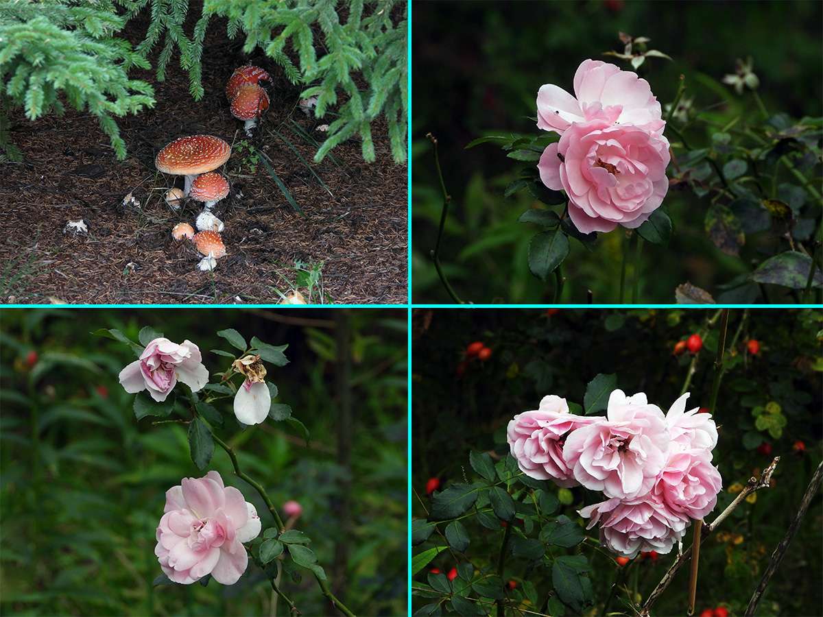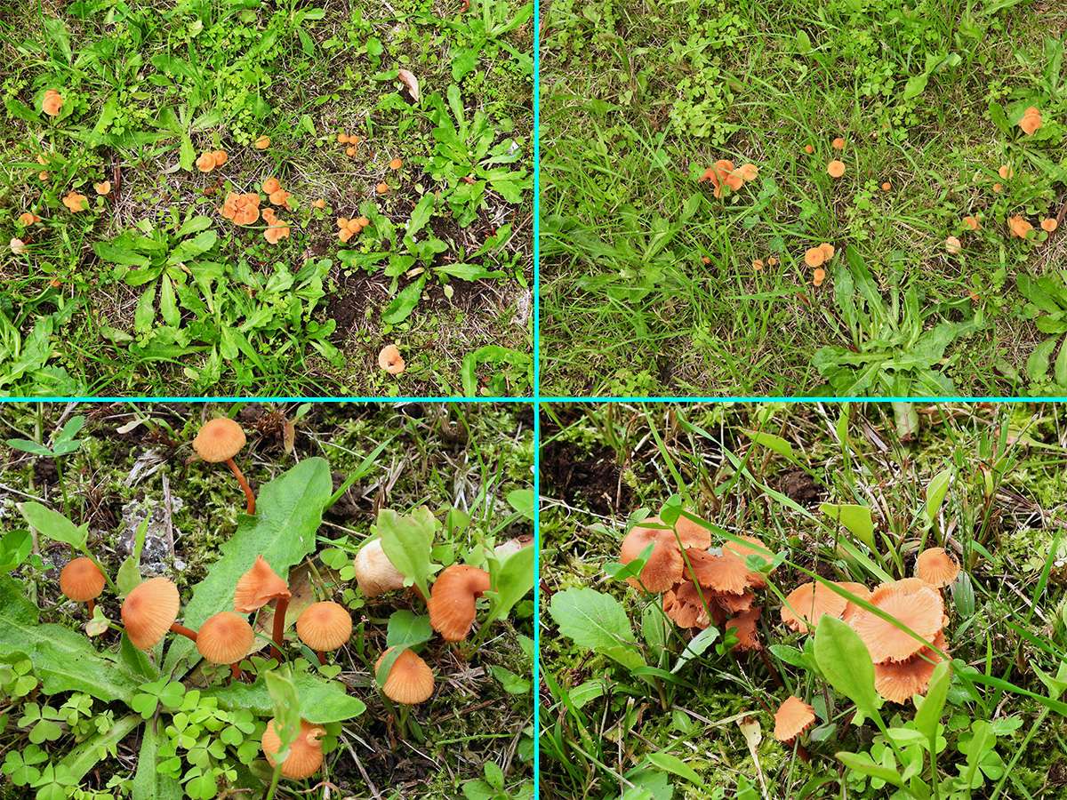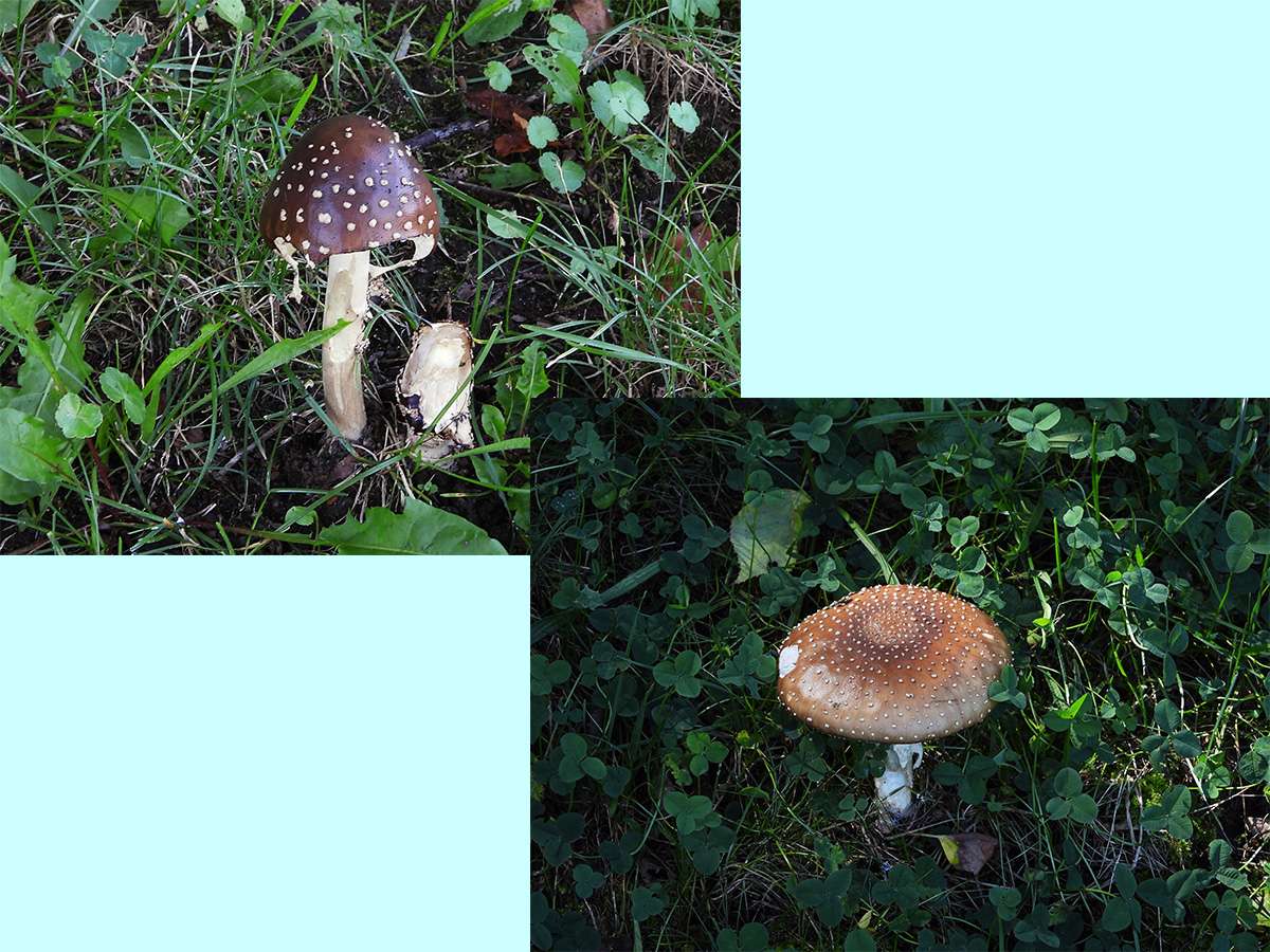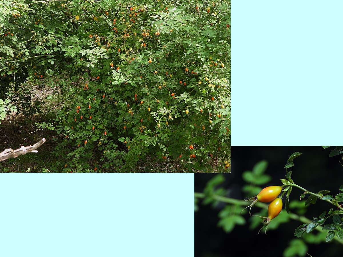 最初に見つけたマムシ草は、葉も枯れてきて、すこし落果が目立つようになりました。(写真5右側上下)