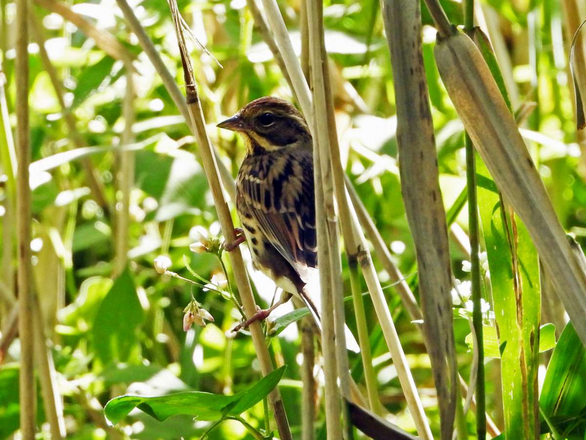 撮影の終わり頃に木道を歩いているときに、地面近くで小さな野鳥が採餌をしているのを見つけました。