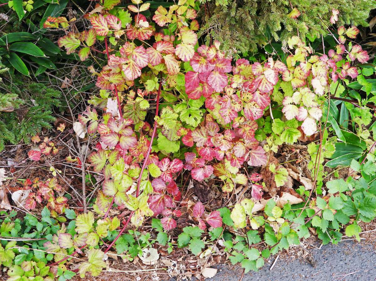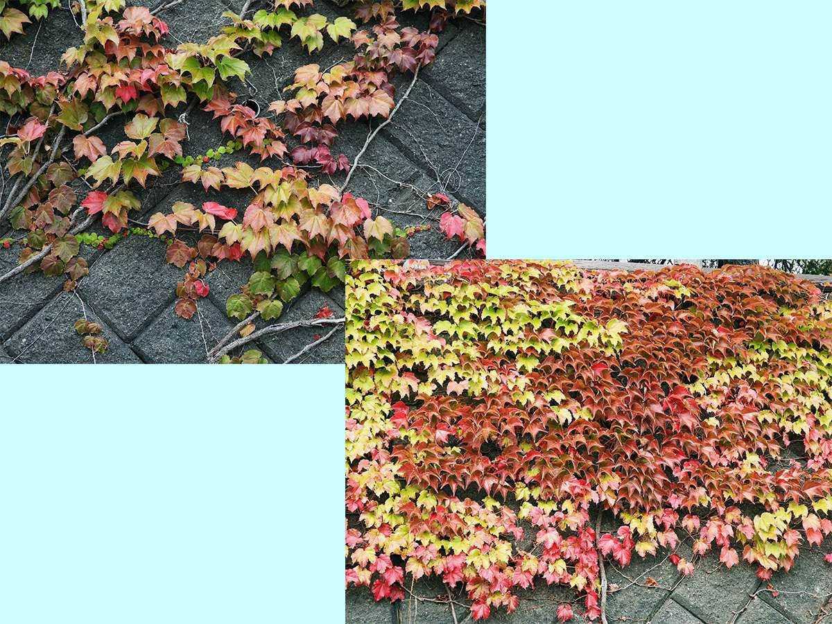 第一駐車場の道路側擁壁のツタが紅葉してきました。(写真9)