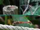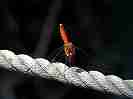 ロープや植物の茎の先端などで、多数のトンボが羽根を休めています。